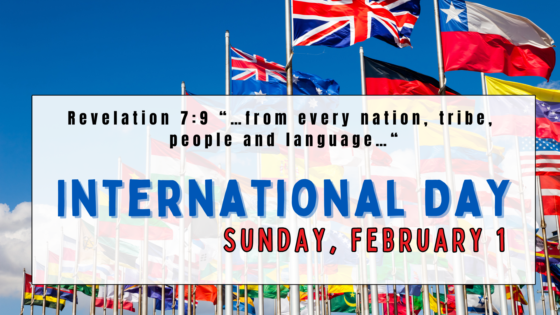 Join us for a special worship service as we celebrate the movement of the Holy Spirit, who has brought people from over 30 nations, tribes, peoples, and languages to Good Hope. Together, we will honor God’s work in uniting us as one family in Christ.