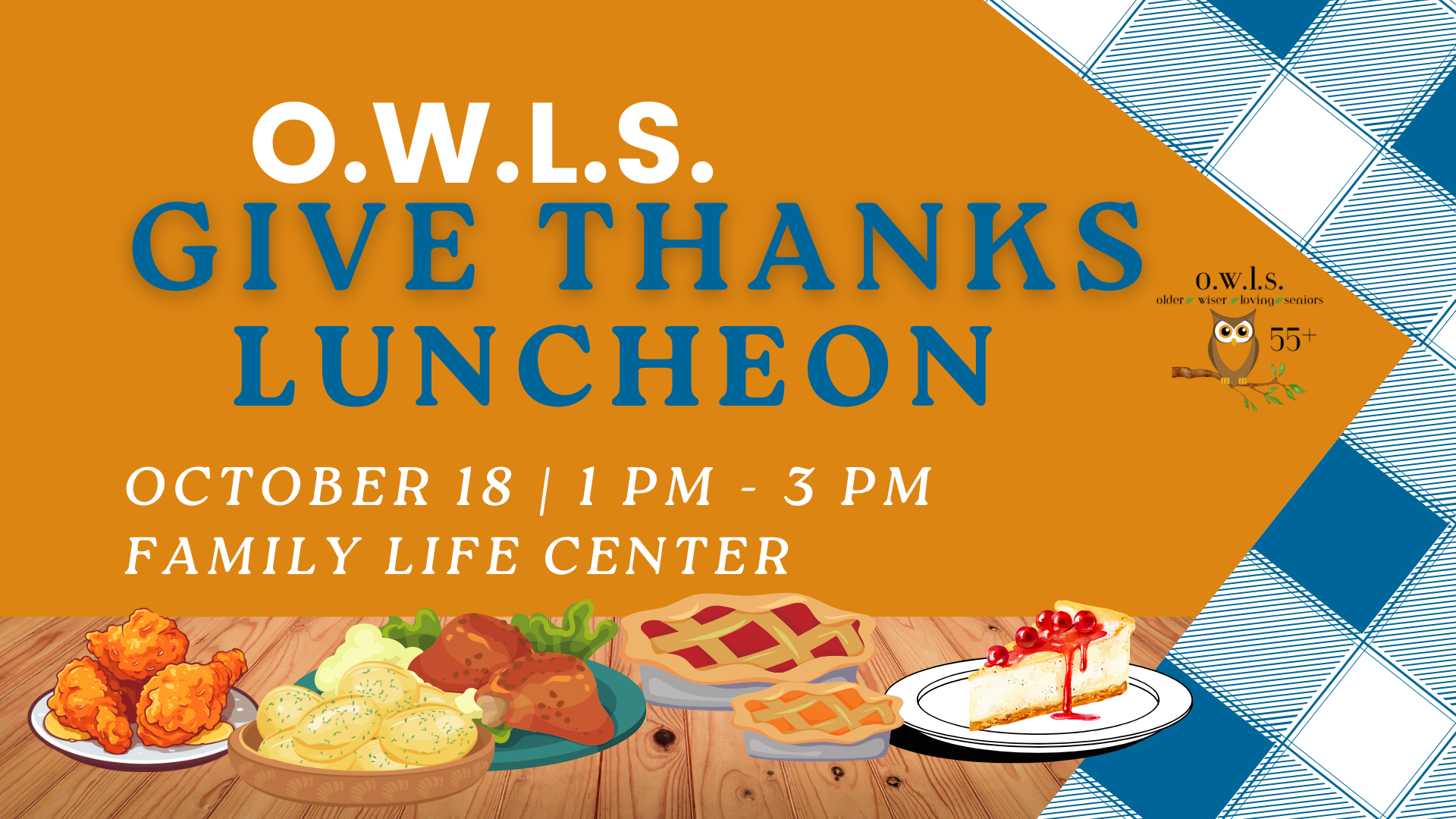 Join us for a time of fellowship and thanksgiving at the OWLS Give Thanks Fellowship Luncheon!