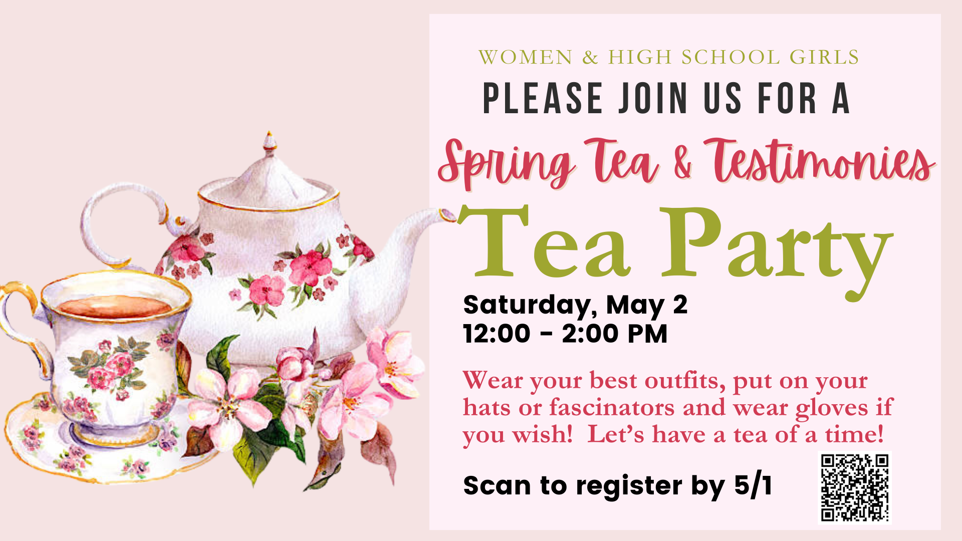 Join the Women of Good Hope for a beautiful afternoon of fellowship at our Spring Tea & Testimonies!