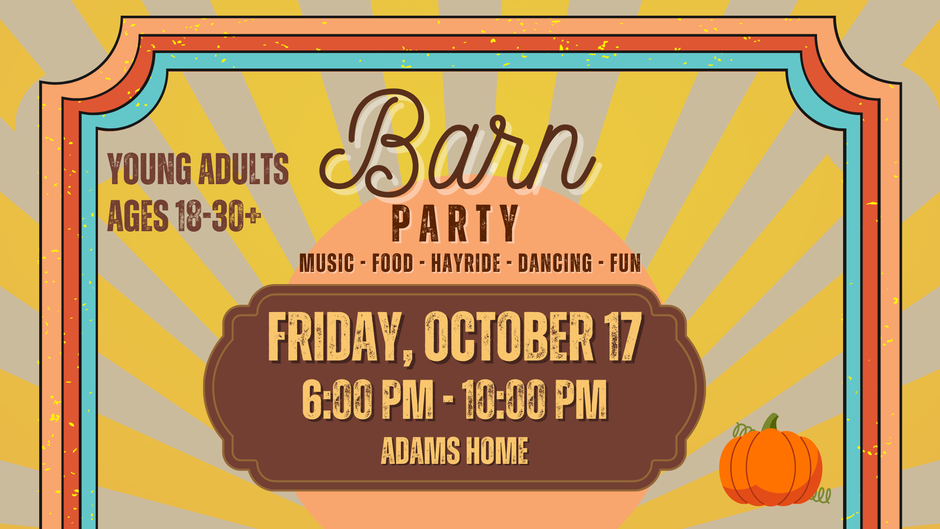 Saddle up for a night of country fun! Join us for a Barn Party filled with great food, music, and fellowship.